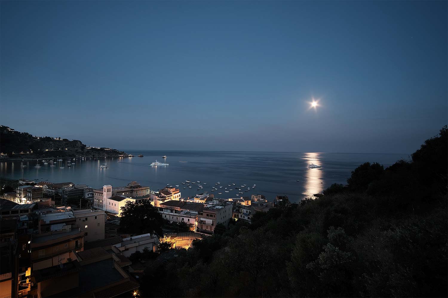 Von der Terrasse und vom Pool aus eröffnet sich ein traumhafter Blick auf das Meer und auf Taormina. Besonders in den frühen Morgenstunden zeigt sich hier ein unvergessliches Naturschauspiel – die Sonnenaufgänge über dem Meer sind ein Moment, den Sie sich nicht entgehen lassen sollten.