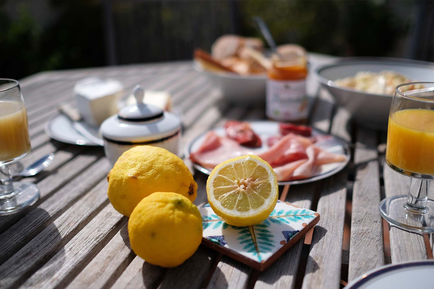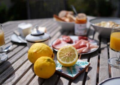 Die großzügige Terrasse im gemeinschaftlichen Bereich der Casa Limoni steht den Gästen beider Apartments zur Verfügung und lädt zum Verweilen und Genießen ein.
